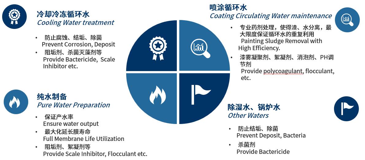 經(jīng)由這些方案的執(zhí)行與正確地偵測(cè),冷卻系統(tǒng)的水所發(fā)生的諸多問(wèn)題都能被良好控制住。我們將與您共同為您的工廠選定正確的處理方案,包括合適的藥品、正確地運(yùn)用所須的訓(xùn)練和維持您的冷卻系統(tǒng)所須的適當(dāng)藥量之偵測(cè)步驟。